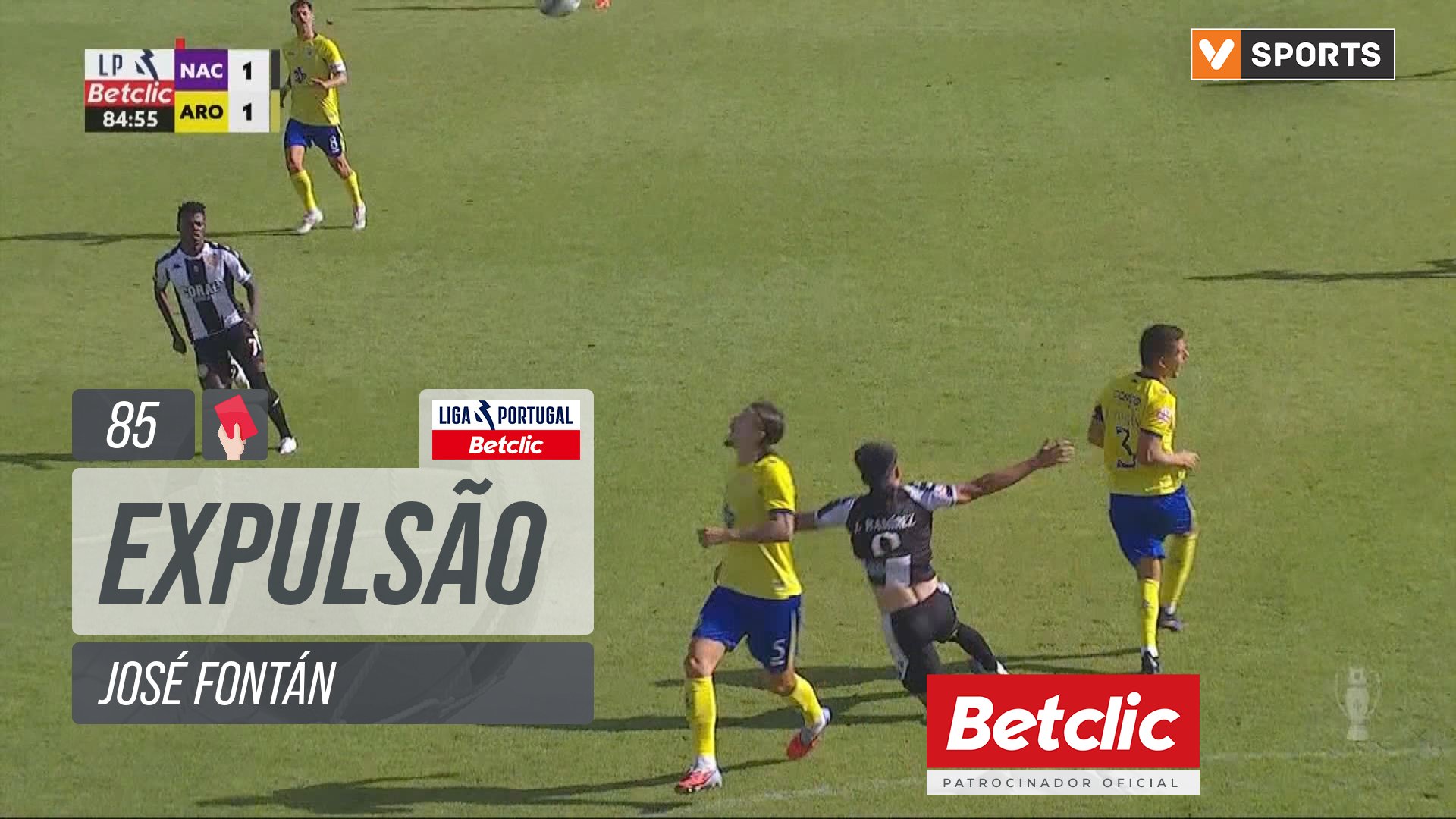José Fontán recebe segundo cartão amarelo após agarrar Chuchu Ramírez e é expulso.